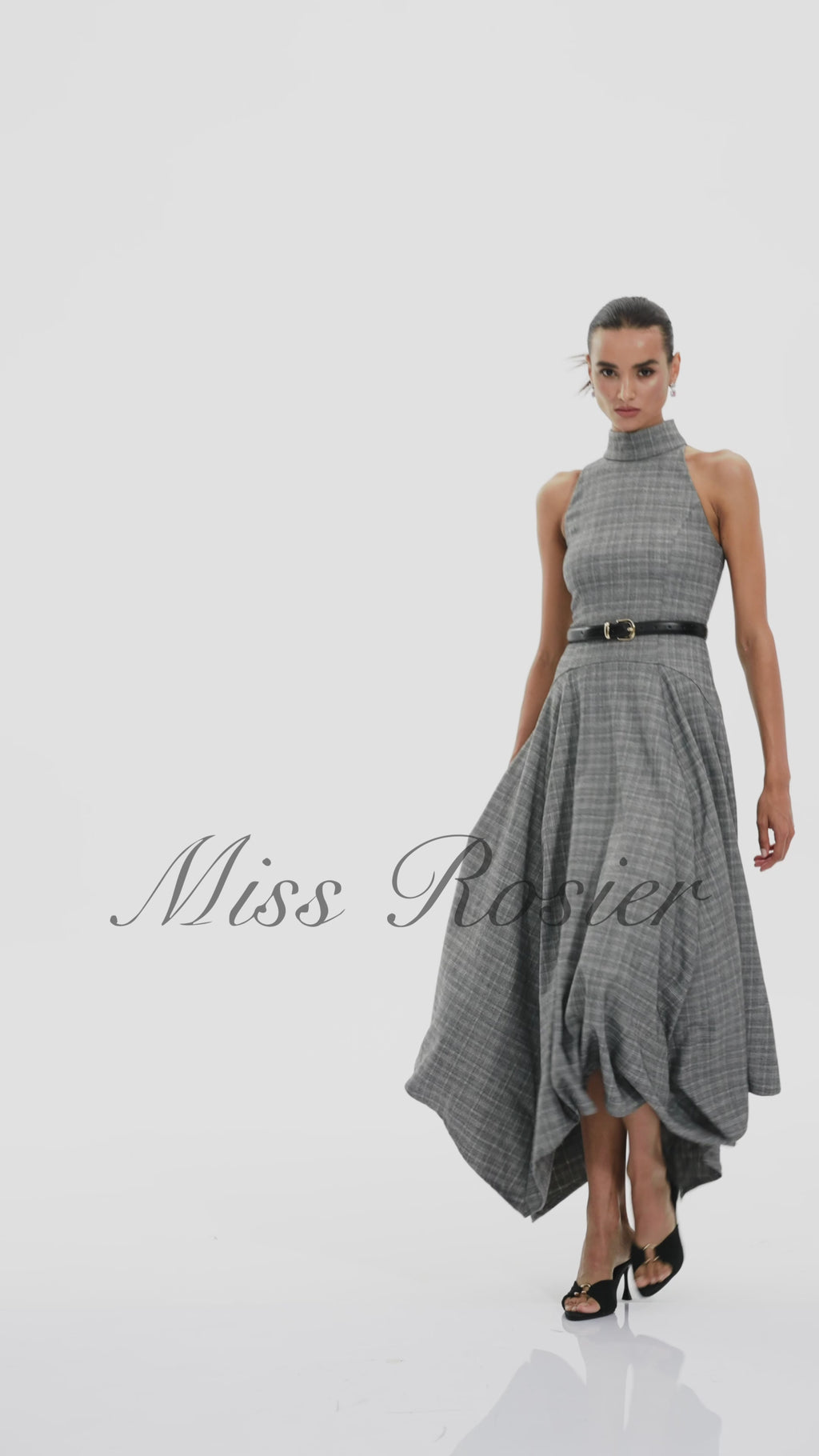 Wilhemine Grey Checked Tweed Maxi Dress (Without Belt)